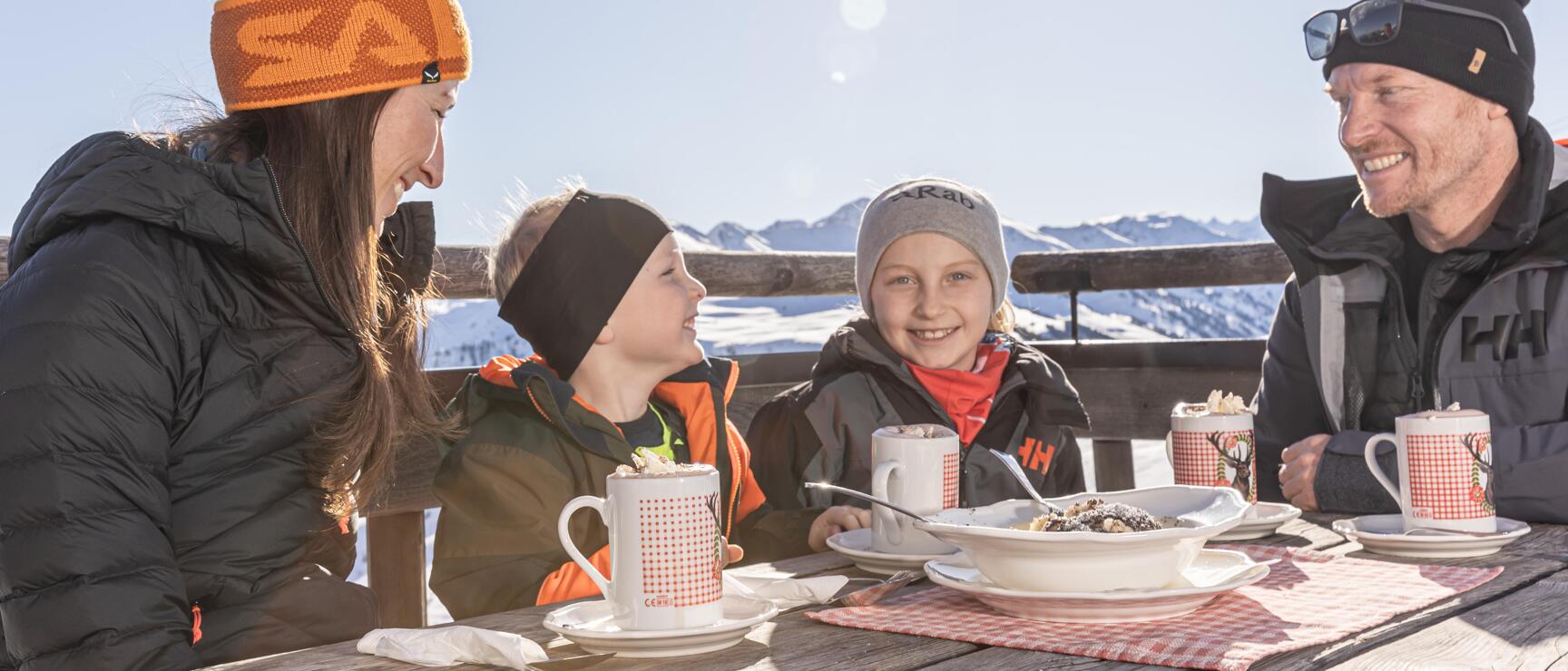 وكمكافأة لك، توجّه إلى كوخ التزلج لتناول المأكولات الكلاسيكية مثل المعكرونة بالجبن، وفطائر اللحم المقدد و/أو الكايزرشمارن – والتي تمدّ الجسم والروح بالكثير من الدفء.