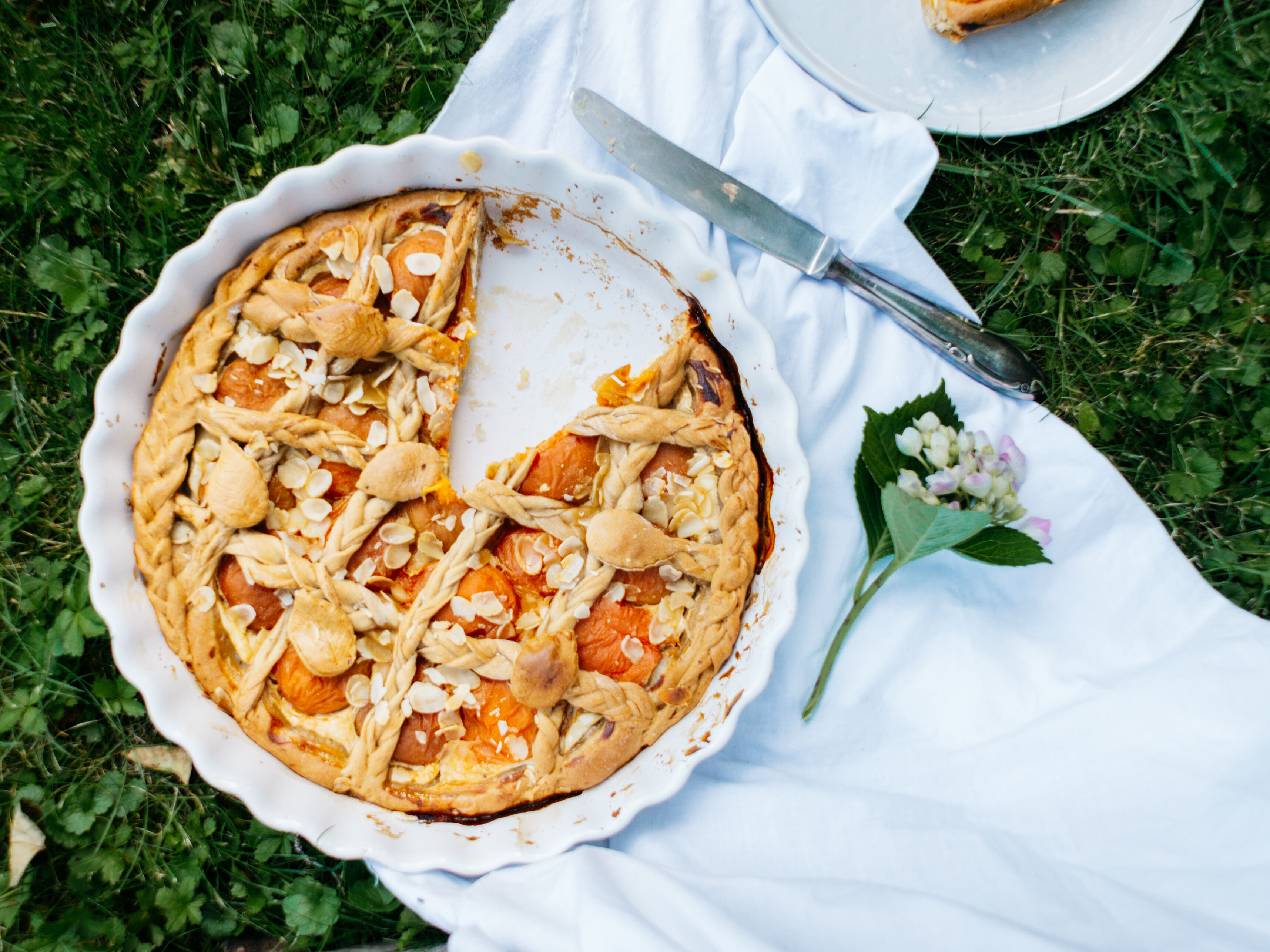 Formu vymažeme máslem a vysypeme moukou. Poté těsto vyndáme z lednice. Asi dvě třetiny těsta vytvarujeme do tvaru koule a pak ho tence rozválíme. Těsto vložíme do připravených forem a pevně je přitlačíme. Tvarohový krém rovnoměrně rozetřeme nahoru. Navrch položíme půlky meruněk.