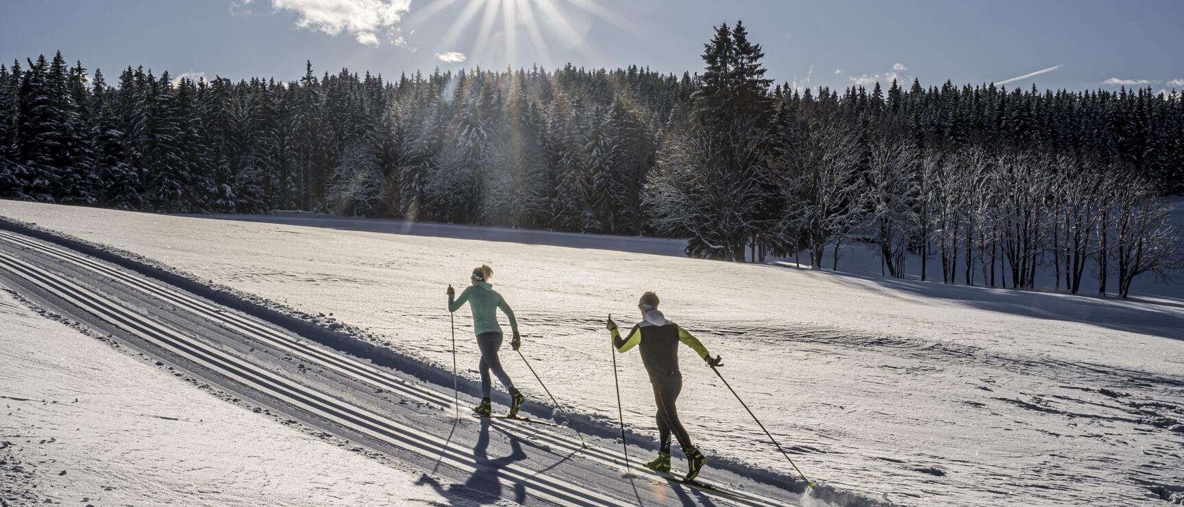 Je to osvobozující pocit: diagonální kroky jsou pružnější, sníh se od tyčí práší v kratších intervalech a dech se zpomaluje. Proplouvejte zimní krajinou svým vlastním tempem. Nastane vedlejší efekt: pocit pohody, který běžecké lyžování na zimní dovolené ve Štýrsku vyvolává zcela přirozeně a nečekaně.