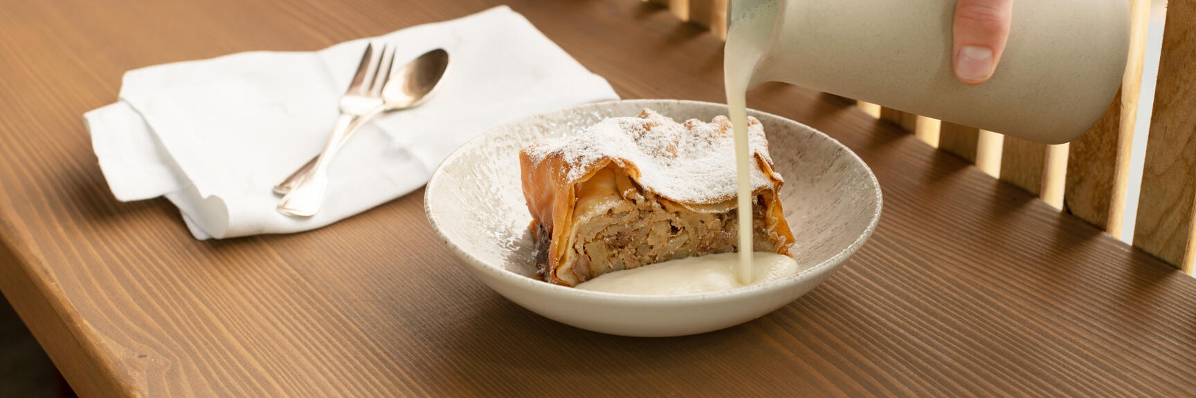 Lo strudel, štrudl, štrudla og štrukli - sådan kalder vores naboer i Italien, Slovenien, Slovakiet og Tjekkiet den søde drøm, der består af luftig dej og saftigt fyld. Det er dog kun det tyske ord "Strudel", der har fundet vej til det engelske hverdagssprog. Et stærkt symbol på, hvor berømt den wienske apfelstrudel er blevet internationalt. Det er let at glemme, at dette lækre bagværk engang måtte rejse langt fra Arabien via det osmanniske rige og Balkan, før det blev naturaliseret i Wien. Men den lange rejse var det hele værd! Det er en sand favorit.