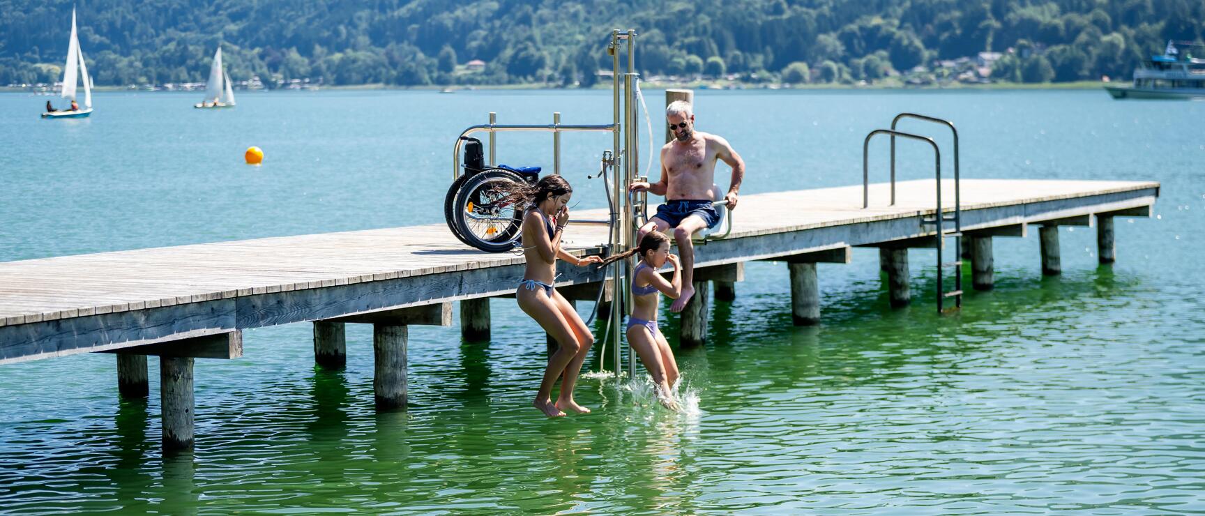 Badeseen mit barrierefreiem Seezugang und Einrichtungen