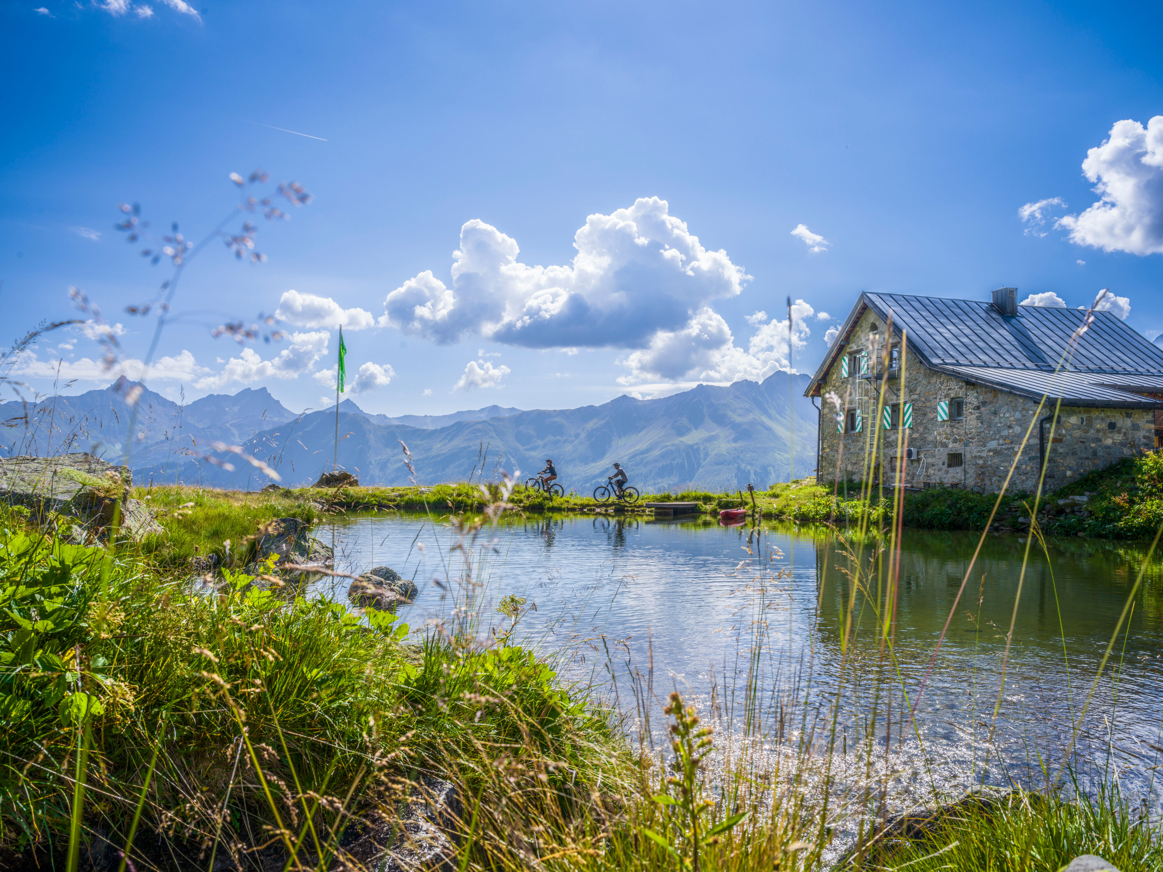 Adrenaline, variety and action – the Silva Trails bike park in Paznaun offers everything a mountain biker could wish for across a total of 15 km: varied trails, jump lines, pump tracks, and challenging descents for every skill level. If you prefer a bit of electric support, you can rent an e-bike. Total elevation difference: 650 m, gradient: 2-10%.