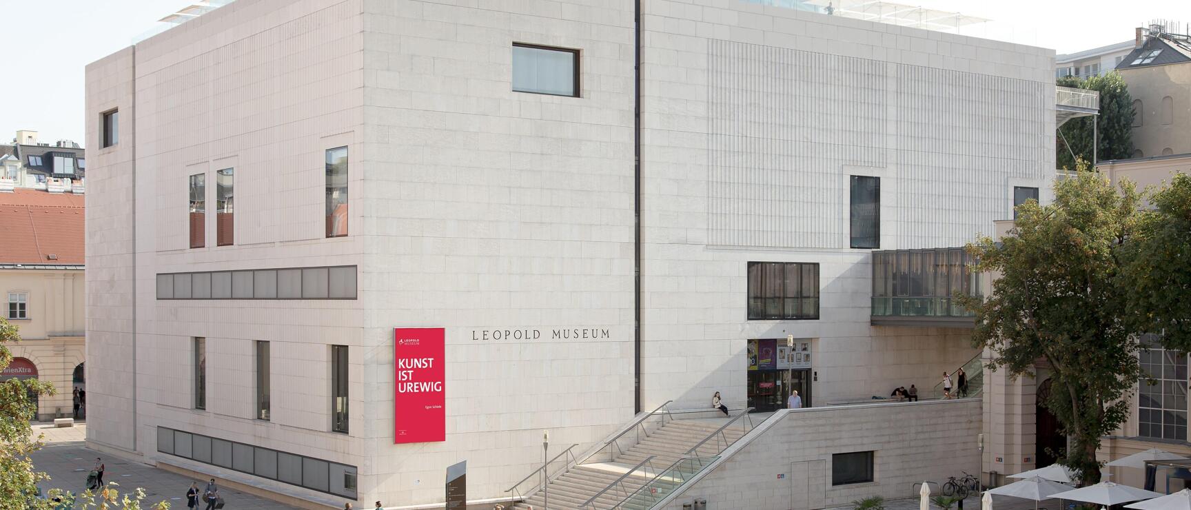 El Museo Leopold alberga una de las colecciones más destacadas de arte austriaco de la modernidad temprana, con más de 8.300 obras, desde el Biedermeier y el historicismo hasta el expresionismo austriaco. La exposición "Wien 1900" es el punto culminante, con la colección más grande del mundo del expresionista austriaco Egon Schiele, además de obras maestras de Gustav Klimt, Richard Gerstl, Koloman Moser y la presentación más completa a nivel internacional de Oskar Kokoschka. También muestra piezas únicas de la Wiener Werkstätte de Josef Hoffmann a Koloman Moser, y fascinantes exposiciones temporales sobre el modernismo clásico y el arte contemporáneo.