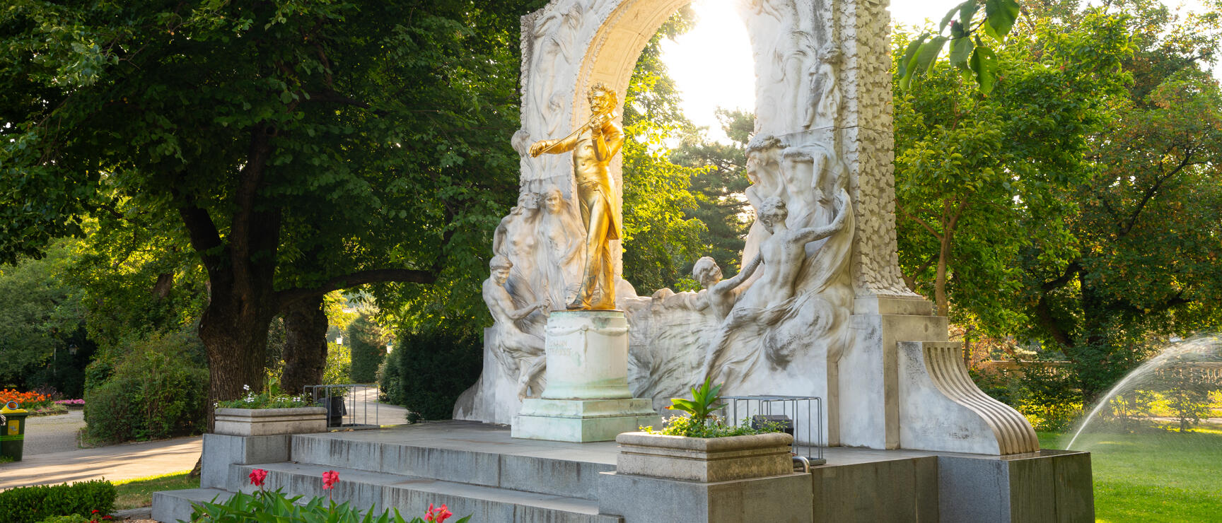 A la vuelta de la esquina se encuentra la Ópera Estatal de Viena, donde en 1892 se estrenó la única ópera de Johann Strauss, Ritter Pásmán. Una vuelta por la Casa de la Música (Haus der Musik), un museo sonoro interactivo, te invita a dirigir una orquesta de forma virtual. La calle Kärntner Straße conduce directamente a la catedral Stephansdom, donde Johann se casó con su primera esposa, Jetty Treffz, en 1862. Continuamos por la calle Wollzeile hasta llegar al parque municipal Stadtpark, donde en 1921 el rey del vals fue inmortalizado con el violín en la mano, un motivo fotográfico muy popular. Cerca de allí, en el centro de eventos Kursalon Hübner, a menudo Johann daba conciertos con sus dos hermanos. Hoy en día aquí se puede disfrutar de conciertos de Strauss, así como en el antiguo invernadero Orangerie del Palacio de Schönbrunn, donde en su día tocó el propio Mozart. Para almorzar puedes hacer una parada en la cafetería Meierei im Stadtpark junto al río Viena, antes de pasear por la calle Ringstraße hasta el canal del Danubio. Aquí, en su antigua vivienda, escribió el vals El Danubio azul.