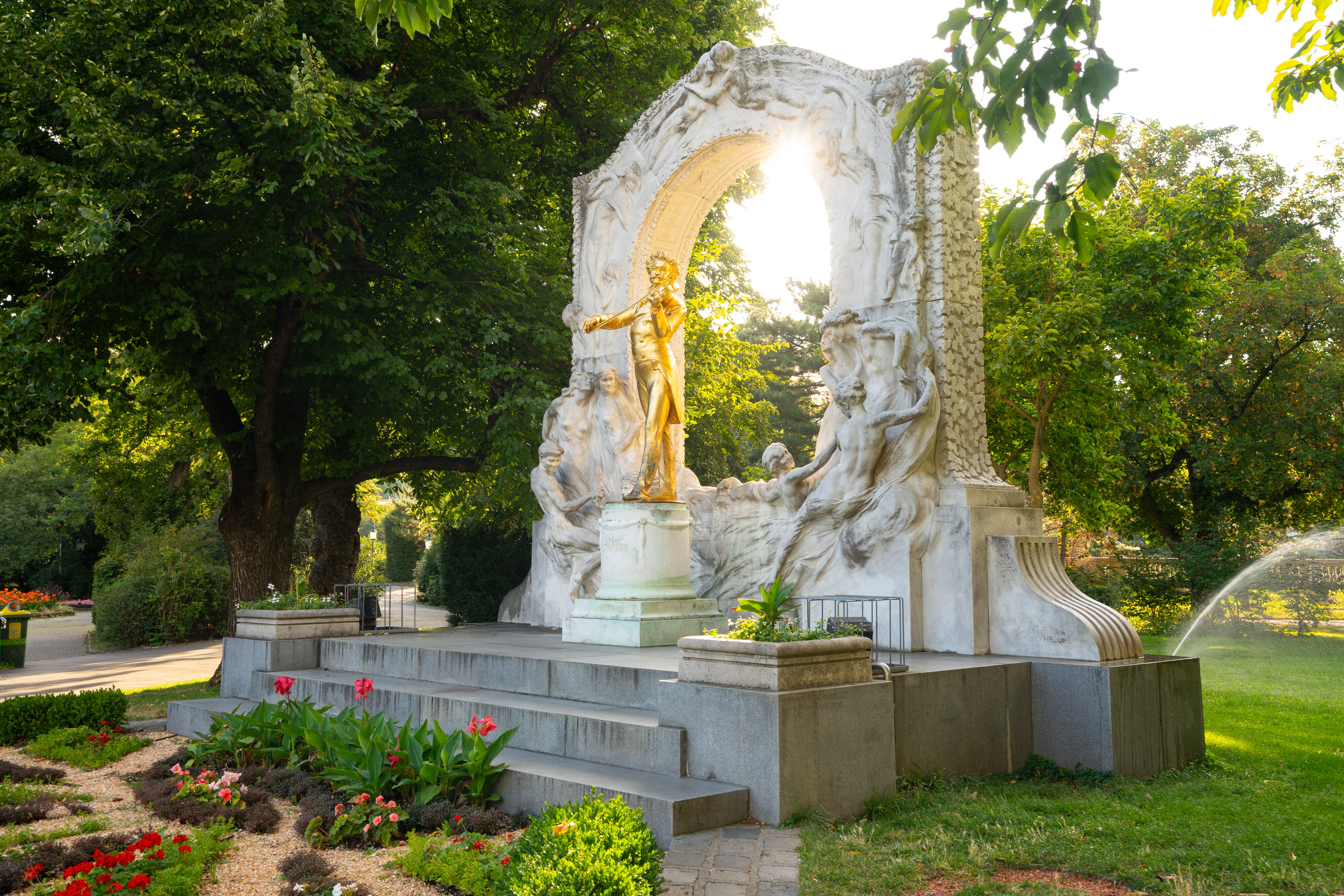 A la vuelta de la esquina se encuentra la Ópera Estatal de Viena, donde en 1892 se estrenó la única ópera de Johann Strauss, Ritter Pásmán. Una vuelta por la Casa de la Música (Haus der Musik), un museo sonoro interactivo, te invita a dirigir una orquesta de forma virtual. La calle Kärntner Straße conduce directamente a la catedral Stephansdom, donde Johann se casó con su primera esposa, Jetty Treffz, en 1862. Continuamos por la calle Wollzeile hasta llegar al parque municipal Stadtpark, donde en 1921 el rey del vals fue inmortalizado con el violín en la mano, un motivo fotográfico muy popular. Cerca de allí, en el centro de eventos Kursalon Hübner, a menudo Johann daba conciertos con sus dos hermanos. Hoy en día aquí se puede disfrutar de conciertos de Strauss, así como en el antiguo invernadero Orangerie del Palacio de Schönbrunn, donde en su día tocó el propio Mozart. Para almorzar puedes hacer una parada en la cafetería Meierei im Stadtpark junto al río Viena, antes de pasear por la calle Ringstraße hasta el canal del Danubio. Aquí, en su antigua vivienda, escribió el vals El Danubio azul.