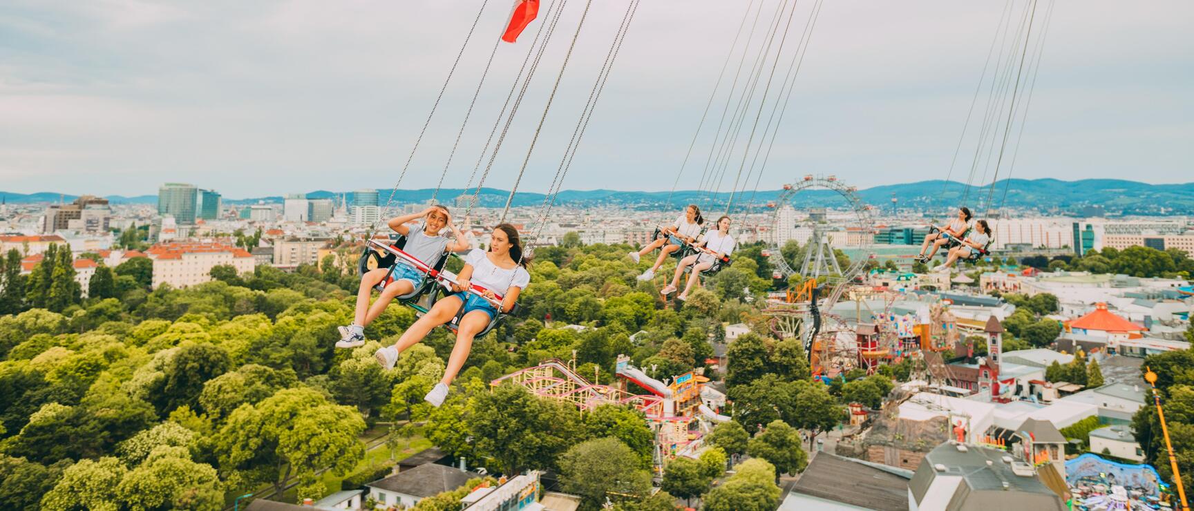 La Torre del Prater columpiarse en círculos en un asiento doble a 117 metros de altura: ¡sólo para los que tienen cabeza para las alturas e ideal para los románticos!El tobogán de madera más antiguo del mundo