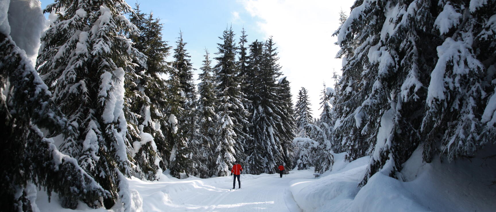 Des milliers de cristaux de glace scintillent sur la vaste étendue de neige, tandis que chaque respiration crée de petits nuages de vapeur dans l'air. Les pensées deviennent alors aussi claires et calmes que l'air hivernal que l'on respire profondément et régulièrement. Les seuls bruits sont le crissement de la neige sous les skis et le bruissement du vent dans les arbres. Les skieurs de fond glissent presque silencieusement à travers le paysage hivernal isolé, découvrant des vallées qui leur sont habituellement inaccessibles.