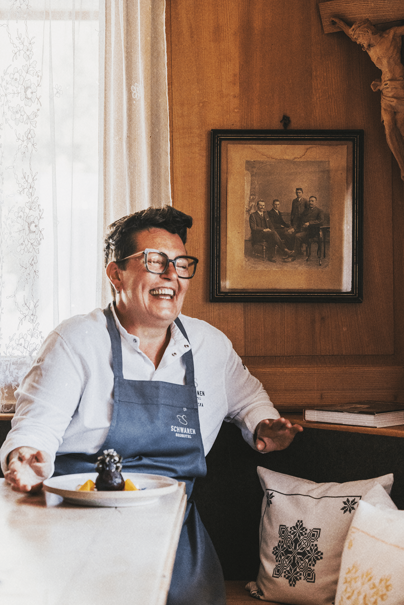 Da oltre 25 anni Franziska Hiller contribuisce a dare forma alla #wildeweiberküche dello Schwanen ed è ora a capo della squadra di cucina.