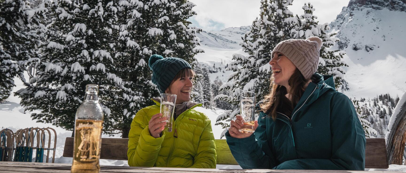 レストランでアルムドゥードゥラーを注文すると、ガラス瓶入りのドリンクが出てきます。これが元祖アルムドゥードゥラー(Original)です。民族衣装を着た男女(名前はヤコブとマリアンネ)が白一色で描かれたレトロな瓶は、思わずお土産に持って帰りたい可愛らしさ(実際に持って帰ってもいいかどうかは、お店の人に聞いてみてくださいね)!オーストリア国内どこでも飲めますが、「アルム(アルプスの放牧地)でヨーデルを歌う」を意味する商品名のとおり、アルプスの澄んだ空気に包まれて飲むと、格別に美味しい気がします。