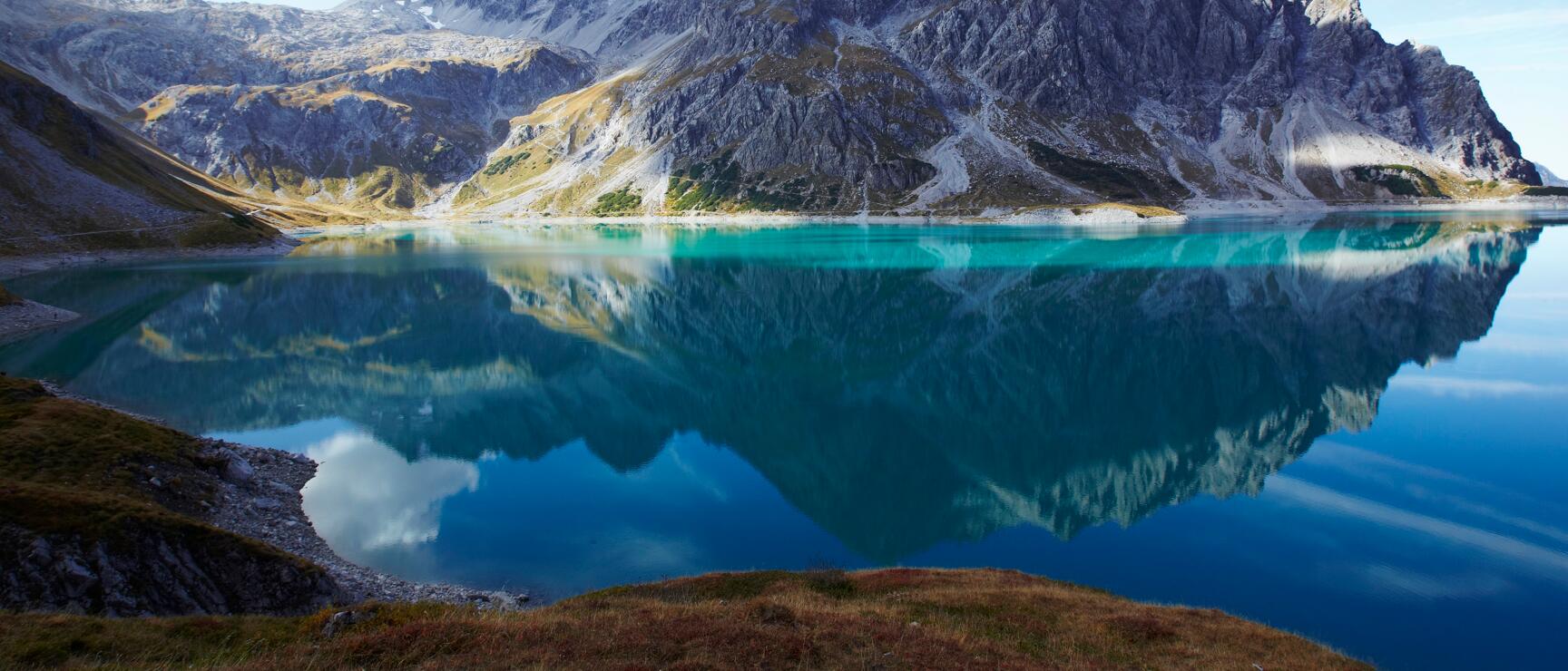 リューナーゼー湖 (Lünersee) は、標高 1,970m、フォアアールベルク州のブランドナータール渓谷 (Brandnertal) の奥に位置し、ラティコン山脈のターコイズ ブルーの宝石と言われてています。 かつては東アルプスで最大の自然山岳湖でしたが、現在はオーストリア西部で最大の人造湖の 1 つです。 山頂や連なるごつごつした岩山だけではなく、なだらかな緑の牧草地が湖を縁取っています。 太陽が輝いていると、透き通った水が素晴らしいターコイズに輝きます。