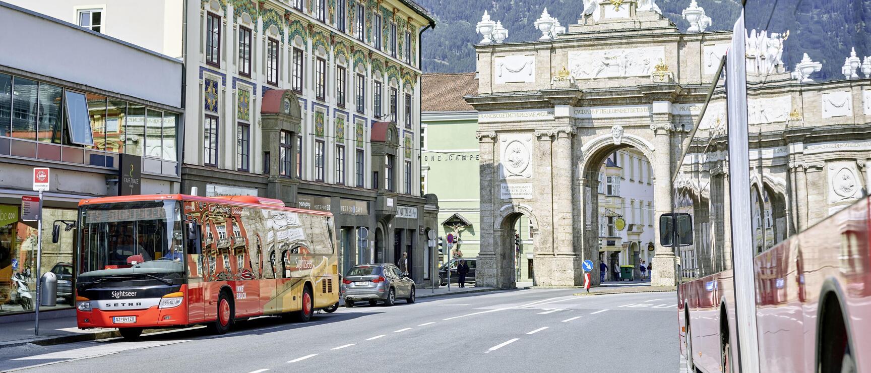 女帝マリア・テレジアに因んで名づけられた、豪華なショッピングストリートであるマリア・テレジア通りは、南は凱旋門から北は旧市街まで続いています。聖アンナ記念柱を視界に入れながら見るノルトケッテの山々と旧市街方面を見る眺めは、他にはない素晴らしいものです。