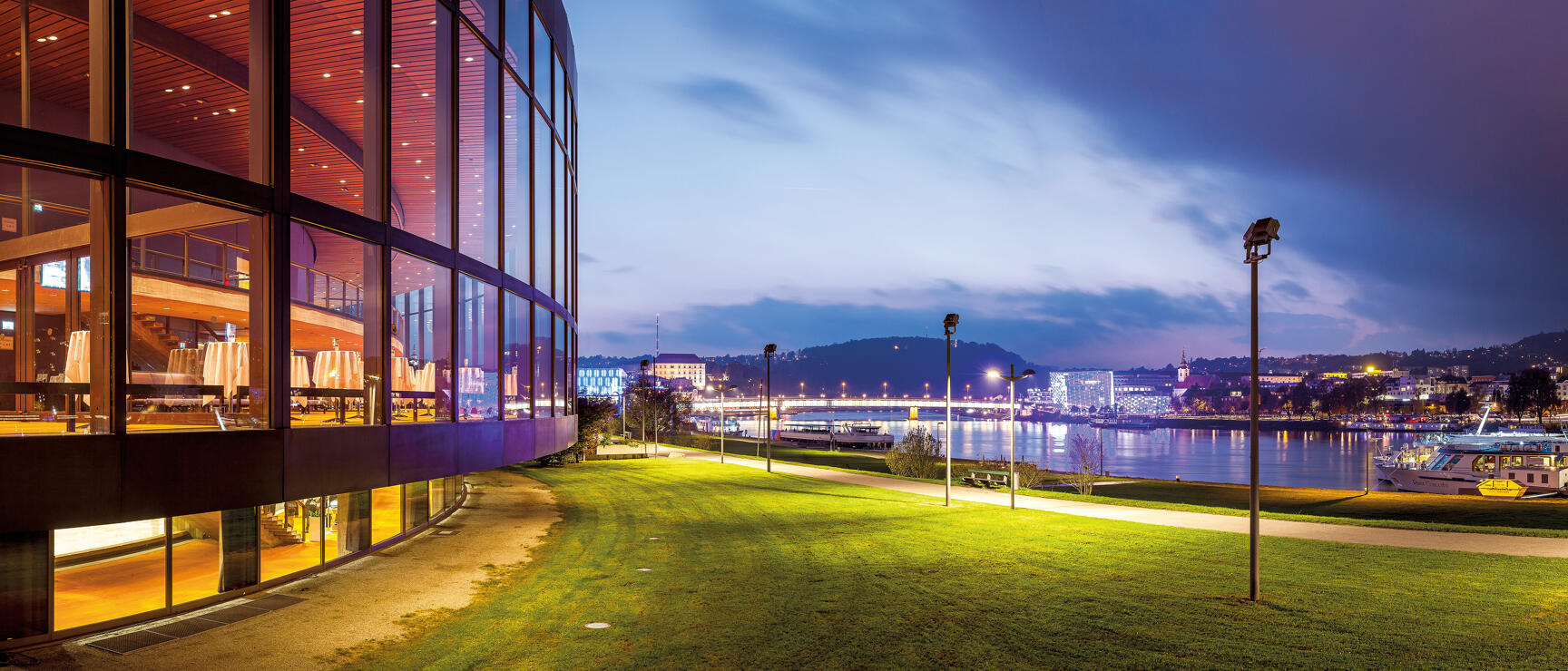 ドナウ川沿いに1974年に完成したモダンなコンサートホールで会議場ともなり、毎秋に開催される 「ブルックナー音楽祭」の会場として知られています。ブルックナーオーケストラの本拠地としてコンサートが開かれます。