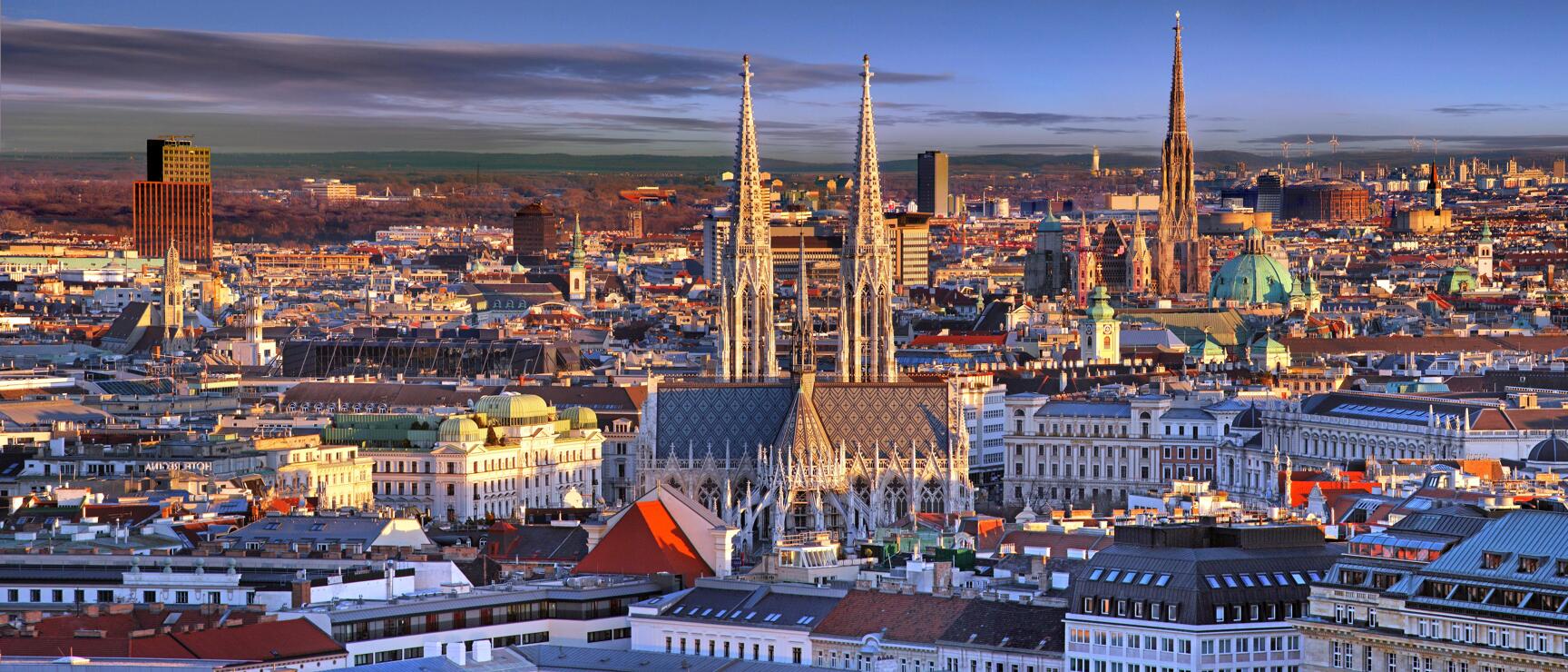 オーストリアの首都ウィーンは長い伝統を持つハプスブルク帝国の都であり、宮廷文化が今も華麗に息づき、音楽と芸術の都として知られる素敵な街です。ハプスブルク王朝の重要な歴史的建築が立ち並ぶ一方、近代的で未来を志向する建築物も多く、スタイリッシュなライフスタイルと活気に満ちた文化の楽しみに溢れています。市の周囲にはワインの産地でもある、1250km2にも及ぶ広大なウィーンの森が広がり、市民の憩いの場所となっています。これは他のヨーロッパの大都市にはみられない独特の魅力です。