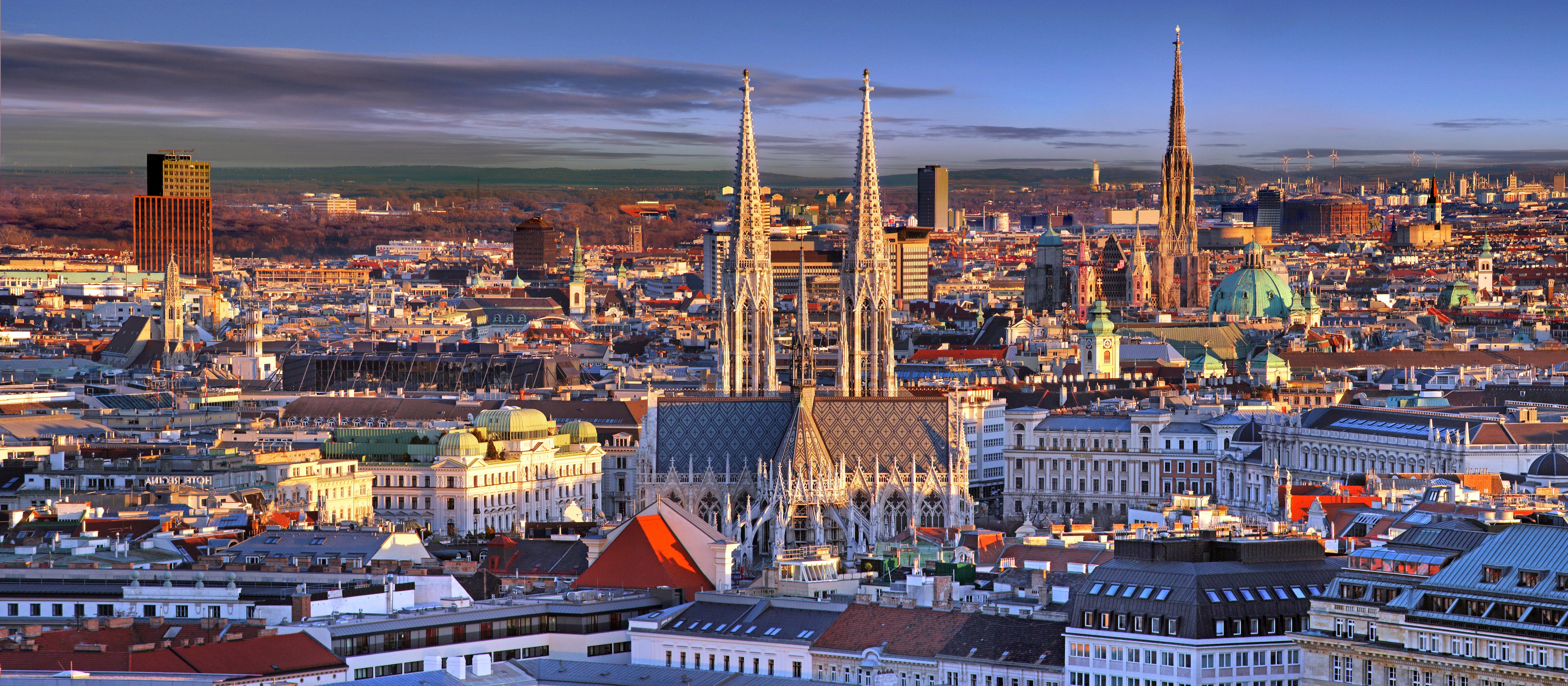 オーストリアの首都ウィーンは長い伝統を持つハプスブルク帝国の都であり、宮廷文化が今も華麗に息づき、音楽と芸術の都として知られる素敵な街です。ハプスブルク王朝の重要な歴史的建築が立ち並ぶ一方、近代的で未来を志向する建築物も多く、スタイリッシュなライフスタイルと活気に満ちた文化の楽しみに溢れています。市の周囲にはワインの産地でもある、1250km2にも及ぶ広大なウィーンの森が広がり、市民の憩いの場所となっています。これは他のヨーロッパの大都市にはみられない独特の魅力です。