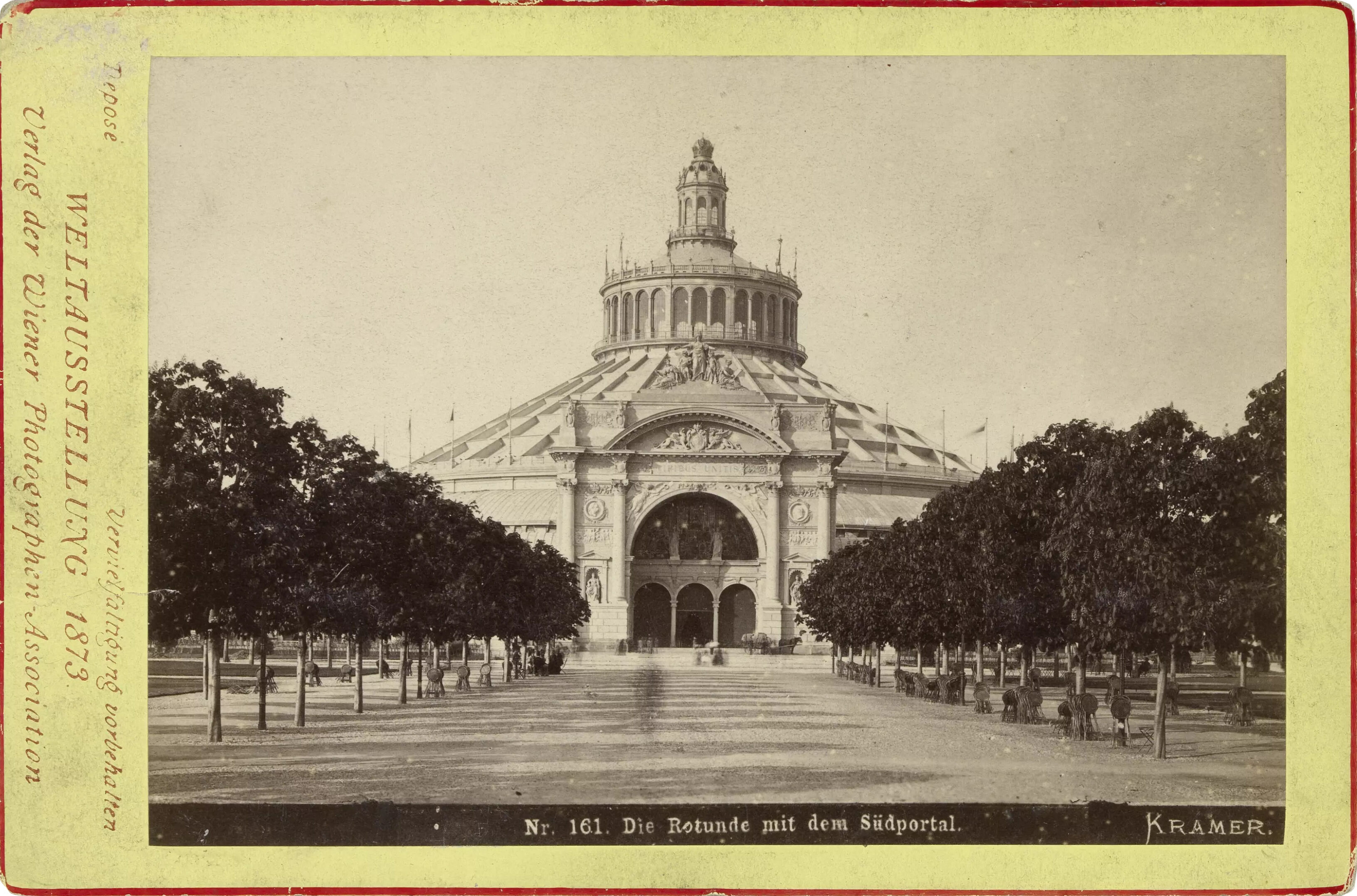 会場となったプラーター公園には収容人数2万7000人の産業パビリオン「ロトゥンデ」が建設され、その左右に約200棟の建物が並びました。参加国はヨーロッパ諸国の他、アメリカ、ブラジル、ベネズエラ、エジプト、ペルシャ、インド、サイアム(タイ)、中国、日本など35カ国に上りました。