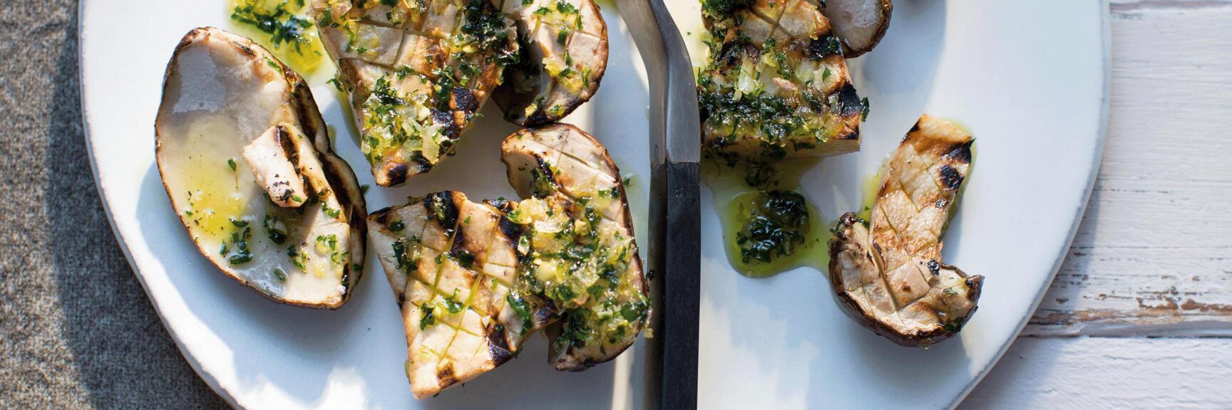 ポルチーニ茸のグリル、サルサ・ヴェルデ添え