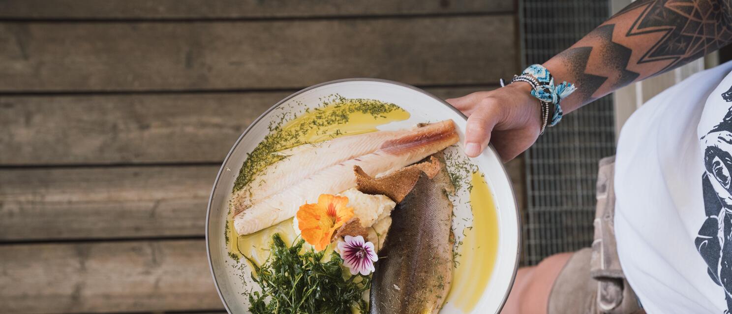 Lukas Nagl gebruikt het liefst alles van de vissenkop tot de staart: Het orgaanvlees gaat in de visbeuschel (een soort stoofpot), de vislever wordt gebruikt in leverknoedels en van de vissenkoppen wordt een curry gemaakt. Hij fermenteert de afsnijdsels van de vis zelfs tot vissaus.