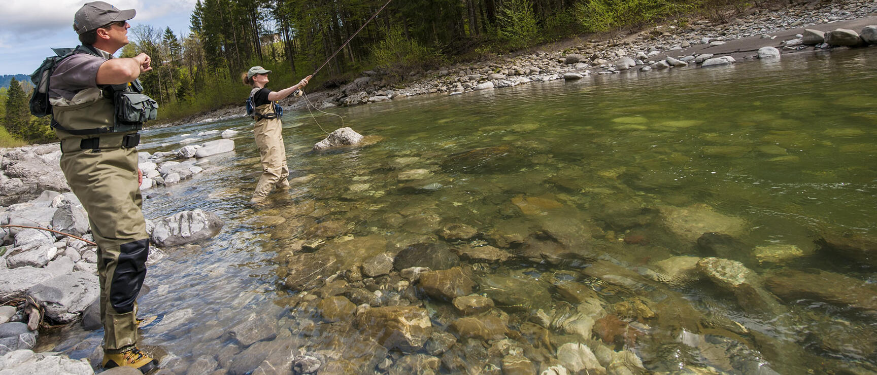Diepe poelen, rustige stukken, ruisende stroomversnellingen door smalle kloven en dan weer uitgestrekte grindbanken: de natuur is in evenwicht in de Alpen, wat resulteert in een uitstekende vispopulatie.