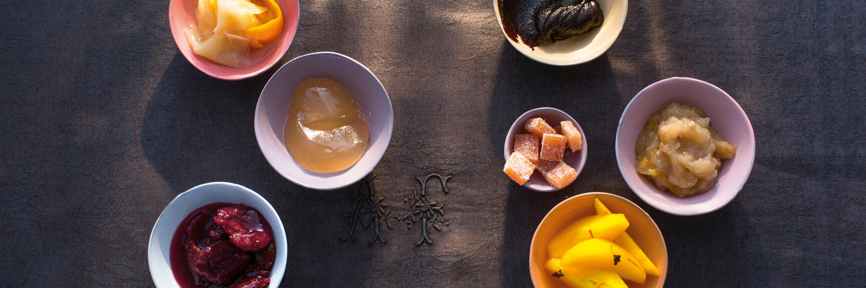 Plaats op een bakplaat. Giet een vingerbreed kokend heet water op de bakplaat en kook de compote 1 uur op 130 °C boven-/onderwarmte. Je kunt de compote ook 45 minuten in een stoompan op 95 °C koken. Laat afkoelen.