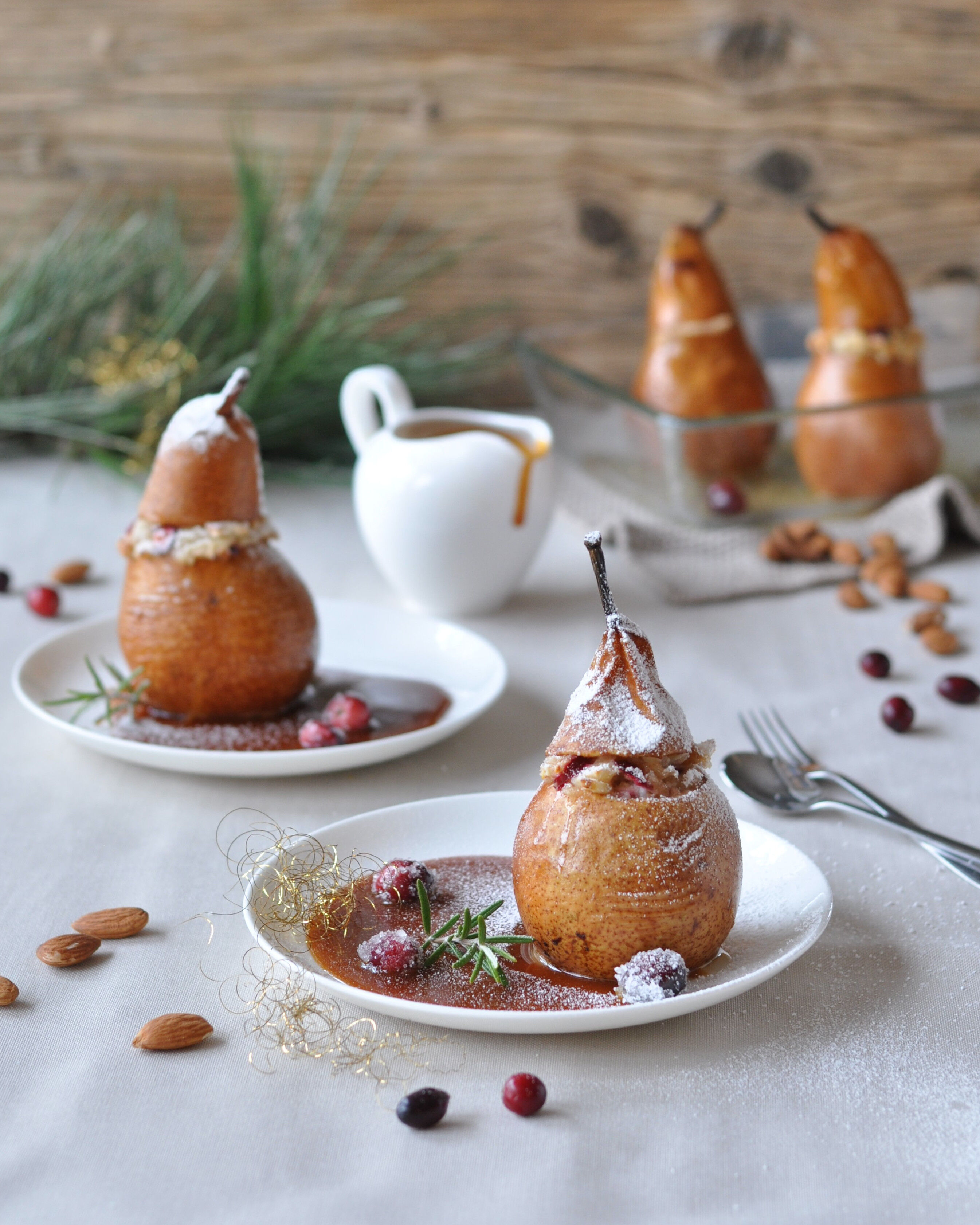 Ugnsbakade päron med marsipan-och tranbärsfyllning
